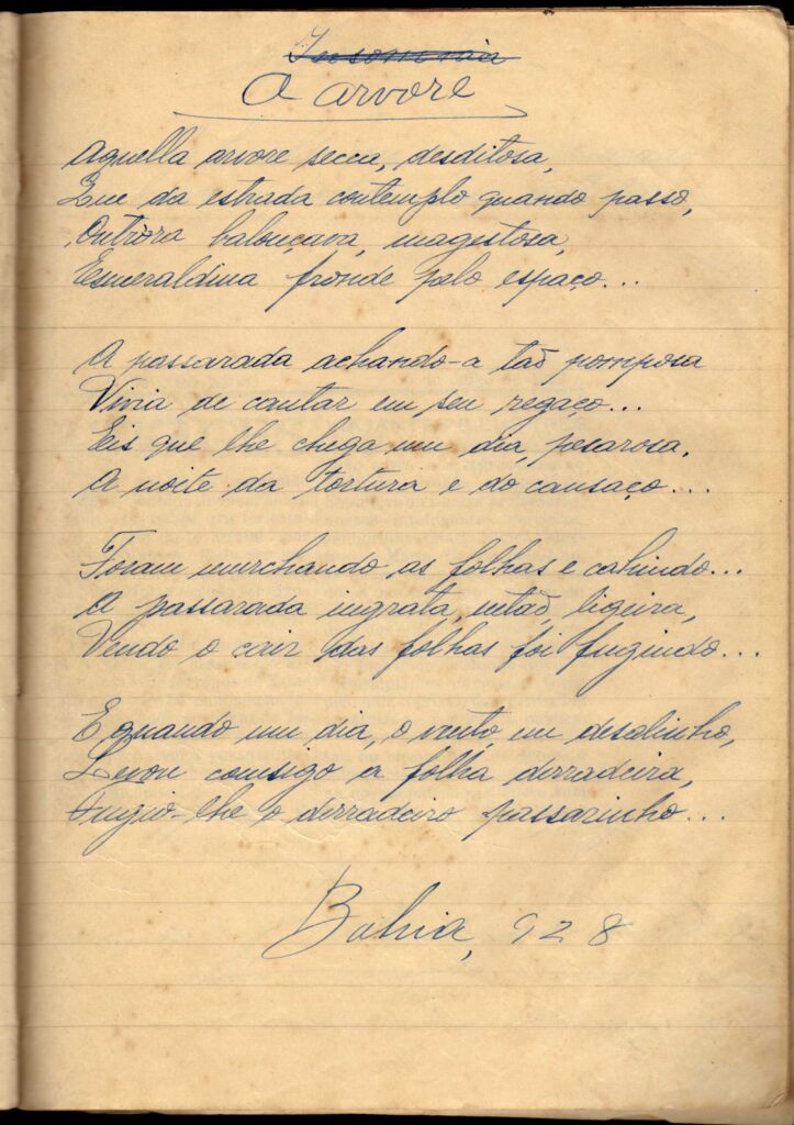 Descrição: É um soneto, apresenta uma rasura no título, o autor tinha escrito "Insomnia". Título e corpo do texto escritos em tinta azul.